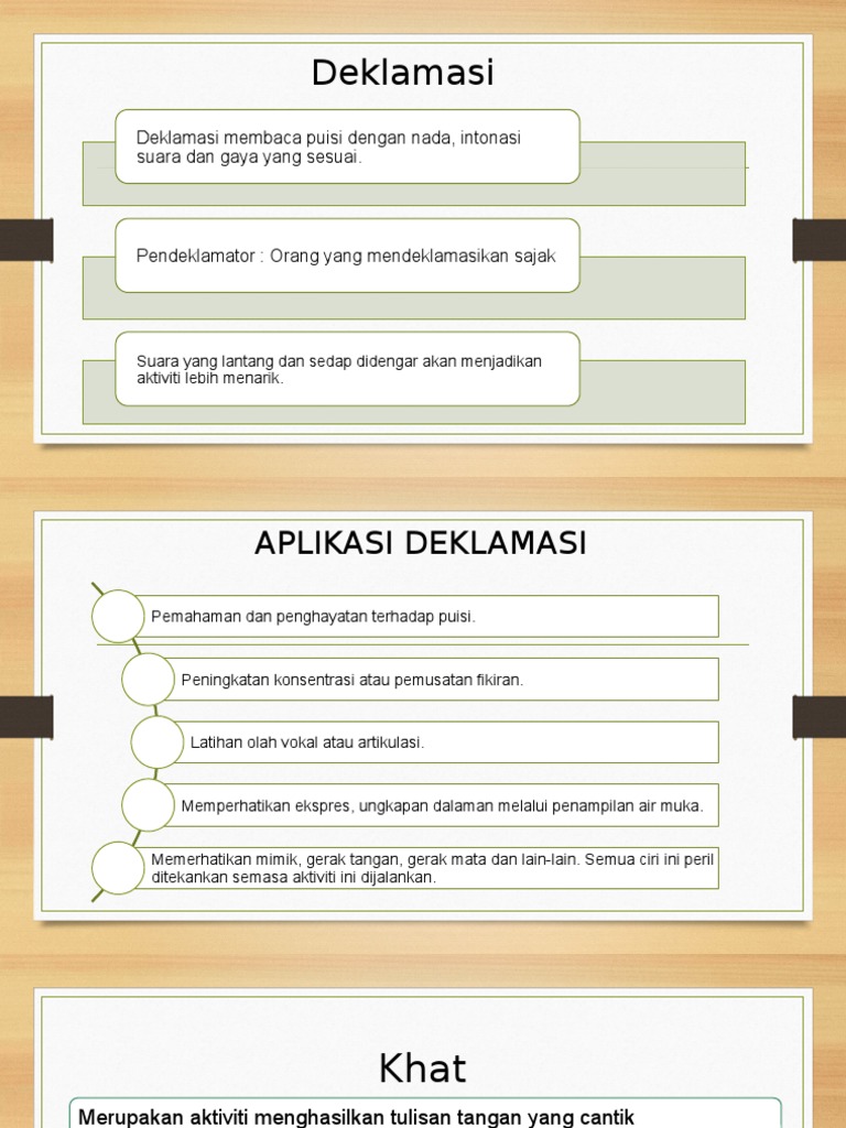 Puisi dan deklamasi bertema natal. Persoalan pula merupakan perkara sampingan yang hendak disampaikan. Lihat terjemahan takrif makna transkripsi dan contoh untuk Deklamasi pelajari sinonim antonim dan dengar sebutan untuk Deklamasi.