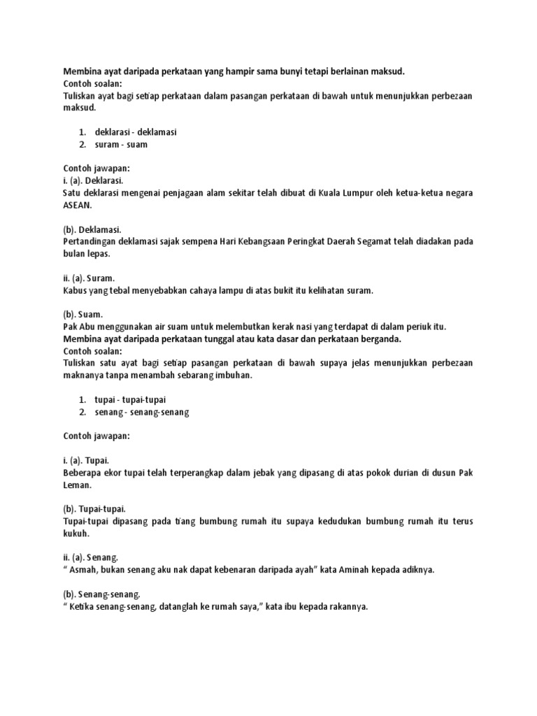 Membina Ayat Daripada Perkataan Yang Hampir Sama Bunyi Tetapi Berlainan Maksud Pdf